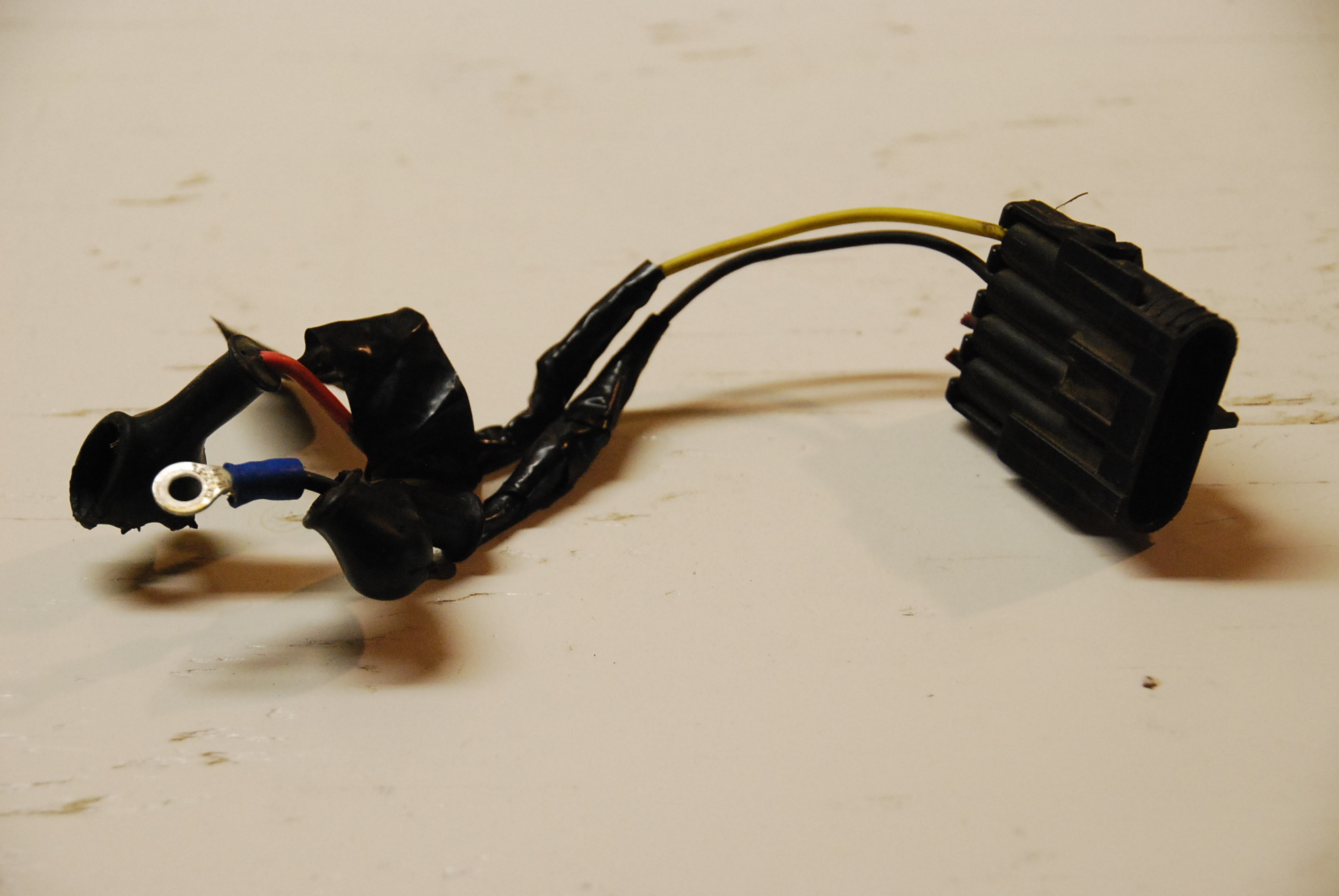 Here you can see the wiring after I removed the pigtail from the car, along with the wrapped-tape and missing ring connector