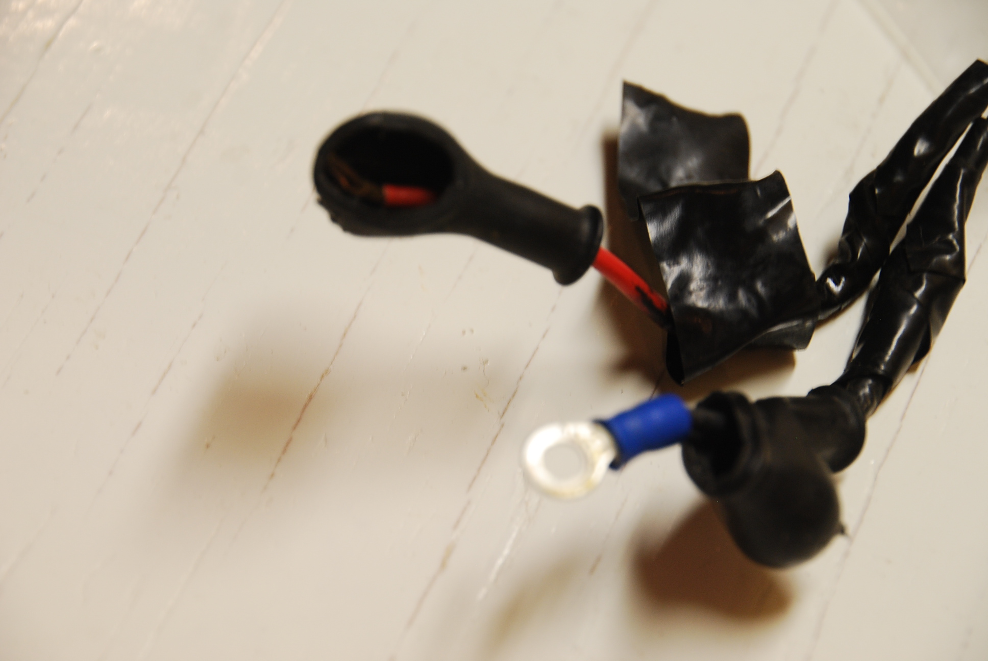 Finally, my repair job with new wiring from the splice, new ring connectors, and proper shrink-wrapped.