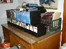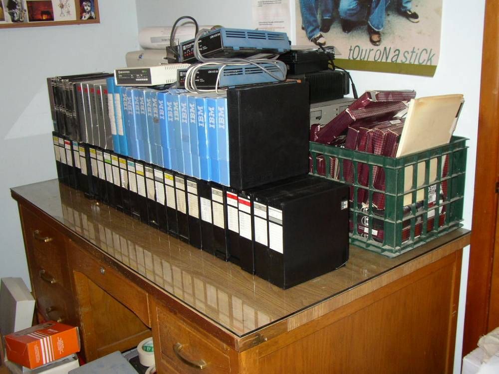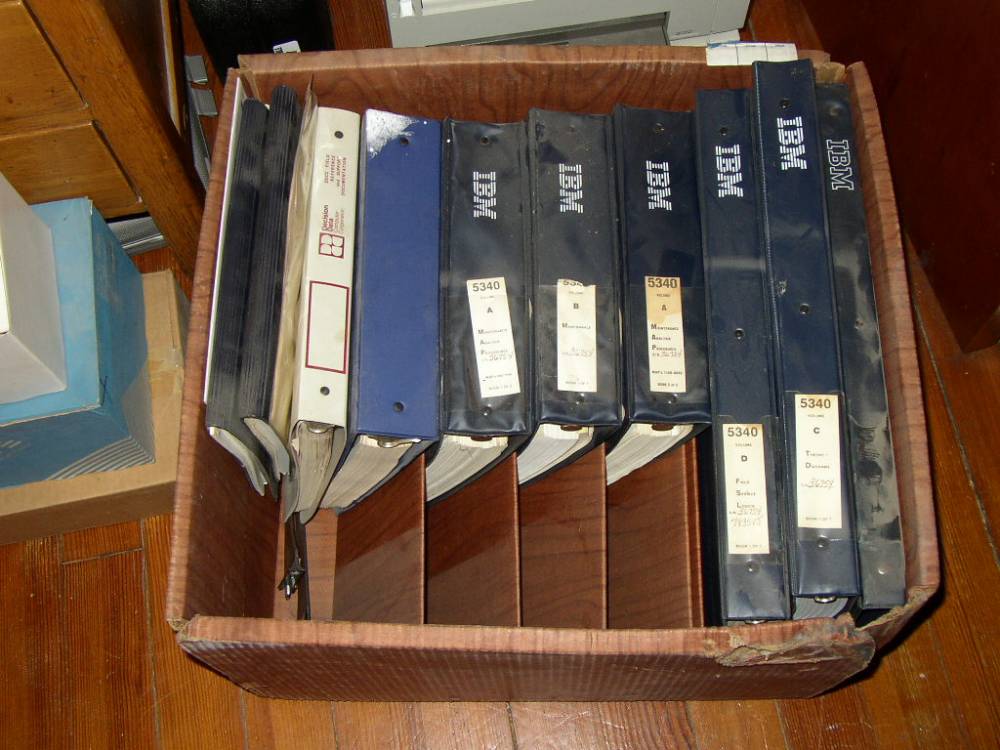 The diskette boxes and jukebox cartridges, and manuals.